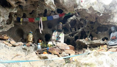 El gran premio de la excursión se encuentra al final de la misma, cuando se llega a un insólito santuario budista levantado en una pequeña cuevecita y donde muchos incluso depositan ofrendas.