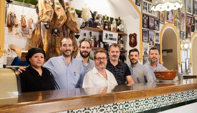 Son muchos los bares cofrades que se inauguran en Sevilla, pero no tantos los que sobreviven. Uno de los templos está donde tiene que estar, junto a la Basílica del Gran Poder. Rodeando la plaza de San Lorenzo se encuentra una pequeña esquina que ni es muy grande, ni es pretenciosa, pero que aparece señalado en cualquier mapa de la ciudad. Entre sus cuatro paredes — aunque hay alguna más — no quedan ni dos centímetros libres. Todas están cubiertas por cuadros que hacen referencia a imágenes religiosas, la mayoría, de Semana Santa. Sólo rompen la regla algunas visitas estelares como miembros de la familia Borbón. Como los tiempos afectan a todo, también se pueden ver calcetines personalizados de 'Pepe Pinreles', con las típicas croquetas, sobre la barra o publicidad de una productora especializada en Semana Santa mientras en la tele se proyectan algunos de sus vídeos del Cristo de la Salud de San Bernardo.
