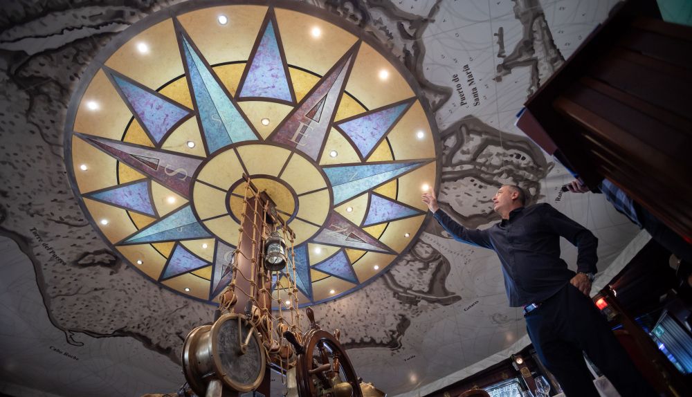 “Mi padre tenía una tienda náutica y compra muchas cosas, lo hemos ido montando poco a poco”, comenta el regatista desde la entrada del restaurante, llena de reliquias. “Todo es auténtico, hay piezas con siglos de historia y algunas han dado la vuelta al mundo”, comenta Pepe mientras describe cada objeto que encuentra a su alrededor.