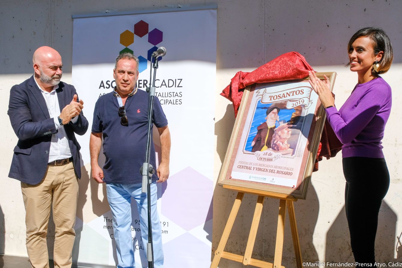La concejala de Fiestas de Cádiz, Lola Cazalilla, ha presentado junto al presidente de la Asociación de Detallistas del Mercado (Asodemer), José Luis Paramio, el cartel y el programa de actividades organizado por su delegación para Tosantos 2019. En la presentación, que se ha celebrado en el Mercado de Abastos y que ha sido dirigida por el presentador Enrique Miranda, también han estado el concejal de Mercados, David Navarro, el ganador del XXXI Trofeo Joaquín Pecci, Rafael Acal Pérez, y Modesto Barragán, que pregonará esta fiesta el próximo sábado 26 en el Ayuntamiento de Cádiz.