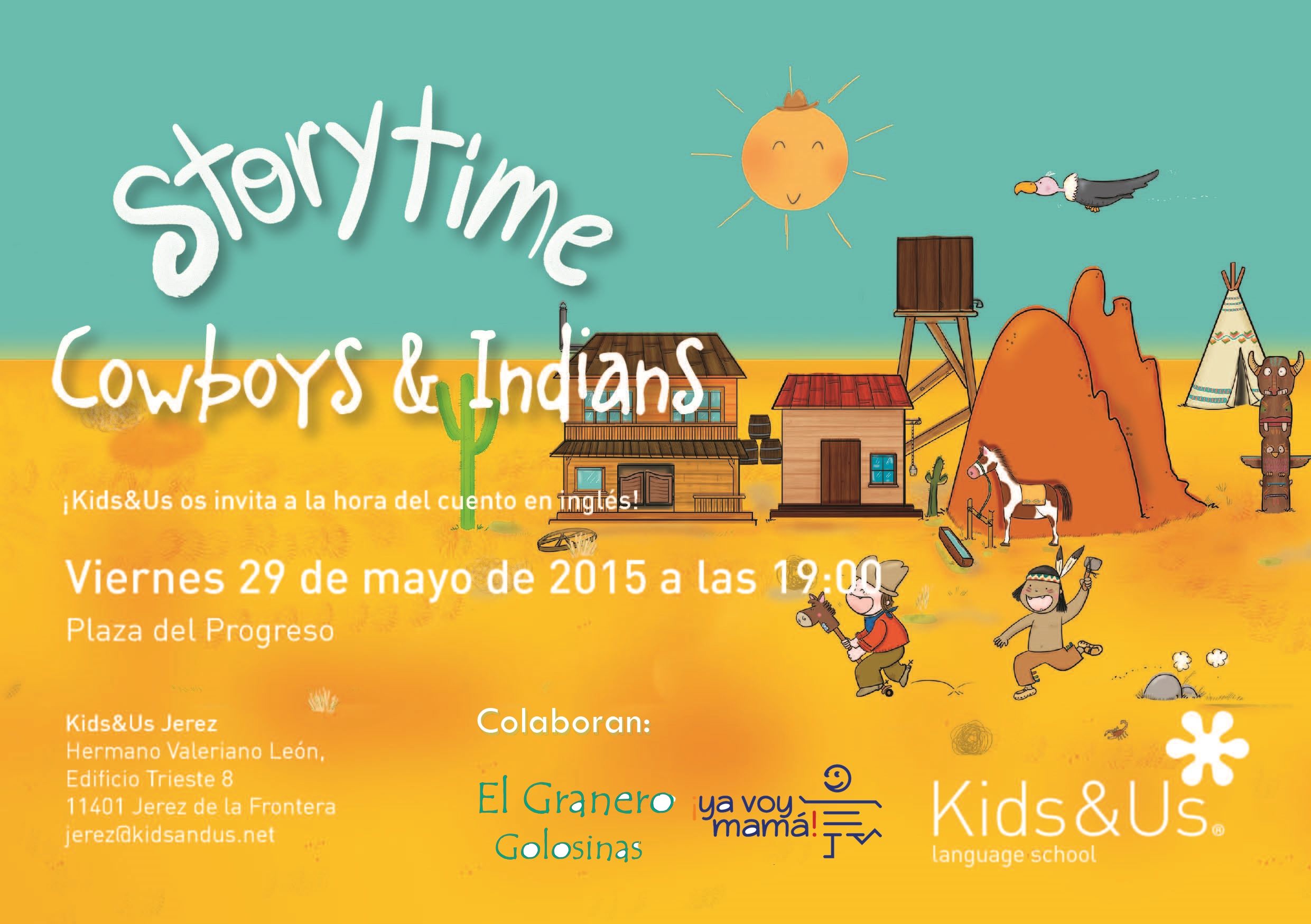 Un día, el gran jefe indio se encuentra un caballo en el viejo oeste y decide darle la bienvenida como nuevo miembro de la gran familia india. ¿Qué pasará cuando se entere de que es el caballo del sheriff? Este será el argumento bajo el que se desarrollará Cowboys & Indias, el storytime (hora del cuento en inglés) que pondrá en marcha la academia de inglés jerezana Kids&Us. La cita será el próximo viernes 29, a las 19:00 horas, en la plaza del Progreso y en ella colaboran las empresas locales El Granero Golosinas y ¡Ya voy mamá!