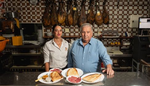 “Aquí empezamos el 7 de octubre de 1994, va a hacer ahora 30 años, pero de renta, y fue tres años después cuando ya nos hicimos con todo esto por 75 millones de pesetas, aunque el antiguo dueño quería más”, recuerda Juan, bien bregado en los tratos, los negocios y la hostelería. “Yo sabía que esto era rentable”, recuerda, “aunque mi mujer no quería que me metiera en una cosa así”. Su hijo Raúl, que ahora tiene 44 años y es la cabeza visible de un establecimiento con 38 trabajadores, entre camareros y cocineras, era un quinceañero en aquella época, estudiaba en los Salesianos de Utrera y luego hizo Empresariales. Pero incluso desde los tiempos de la carrera “compaginé los estudios con el negocio familiar”, recuerda él, ahora que tiene la responsabilidad de un negocio en el que no se para un segundo, que compra semanalmente 5.000 euros en pan y que, arriba de la amplísima venta -que cuenta con varios espacios gastronómicos, un patio y una terraza-, tiene un hotel con 18 habitaciones que suelen estar llenas. “Aquí para todo el mundo”, corrobora Raúl, y su padre habla de camioneros, comerciales, ejecutivos y turistas. Si tanta gente ha hecho escala en la Venta El Pan cuando era la salida natural de la autopista, “más gente hay ahora, desde que se ha liberado el peaje, quizá demasiada”, bromea Juan, que no contento con la tarea que le da a él personalmente cortar unos 900 jamones por año, diseñó una exagerada cesta que no se sortea en Navidad, como se suele hacer en otras ventas, sino el 28 de febrero, festividad del Día de Andalucía.