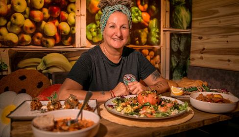 Además de veterana hostelera, hace "once años" que tomó "la decisión particular e individual de ser vegana, de no comer nada que proceda de animales. Es una cuestión personal, una preferencia, un modo de vida, no pretendo convencer a nadie ni que nadie tenga que ver las cosas igual que las veo yo".