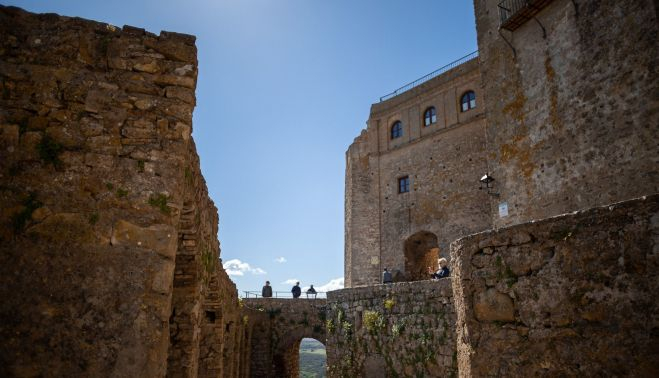 The castle, one of the few existing examples of an inhabited medieval centre, has a charming hotel belonging to the Tugasa group (part of the Cádiz Provincial Council hotel network), an unmissable starting point to explore its twisting medieval streets and gaze over the unspoilt nature that surrounds a site where everything breathes history. Above it, the Church of the Divine Saviour, the passageway called “algorfa,” which connects with the Alcázar, and the Almoraima Tower. Below it, a monarch butterfly route, among the many nature activities.