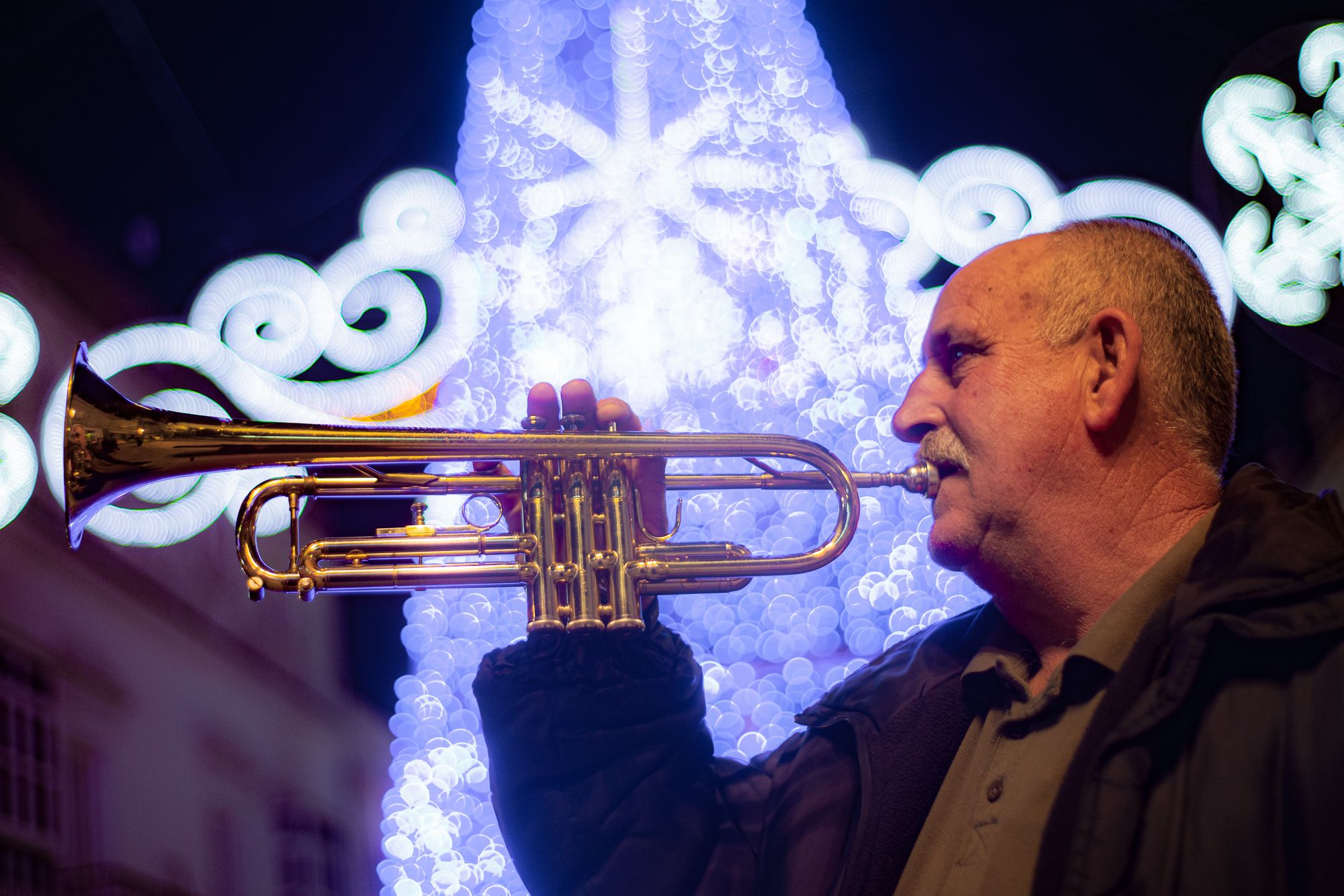 Los seis se detienen frente al árbol ubicado frente al Ayuntamiento y sacan de sus fundas los instrumentos protagonistas. Con solo soplar la boquilla, la trompeta despierta la curiosidad de los viandantes, que rápidamente reconocen el hilo musical.