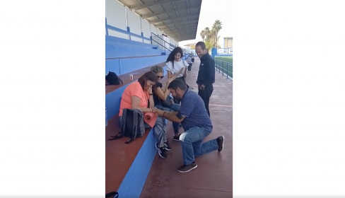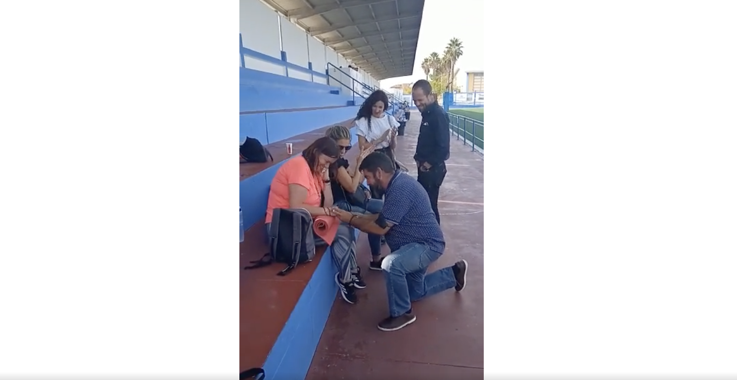 El campo de fútbol de Guadalcacín ha sido el escenario de una petición de mano de lo más original, divertida y romántica.